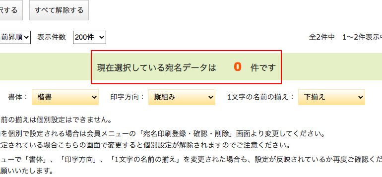 「印刷する宛名を確定する」ボタンをクリックすると、印刷する宛名が決定されます。