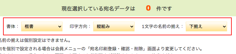 ⑤宛名で使用できる書体は「楷書」「行書」「明朝」「隷書」の4書体です。