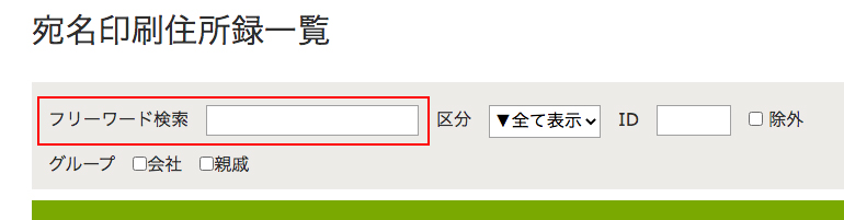 宛名印刷住所一覧画面の検索窓で、宛名の検索が可能です。