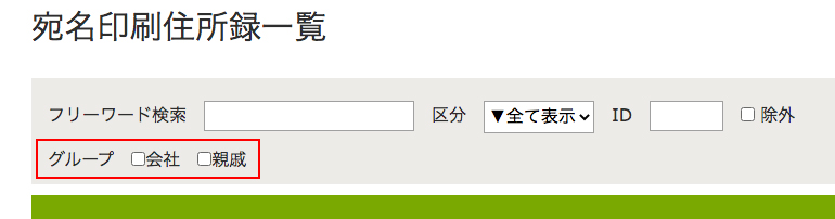 グループ欄では入力したグループで絞込が可能です。 複数を選択して表示する事も可能です。