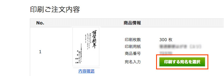 差出人情報を入力して、商品画像の下にある「印刷内容を確認する」ボタンをクリックします。